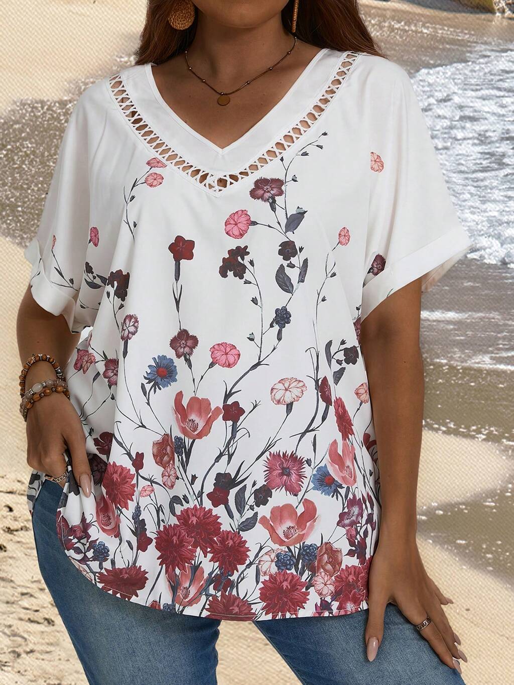Chemisier à manches courtes imprimé floral pour femme grande taille pour l`été