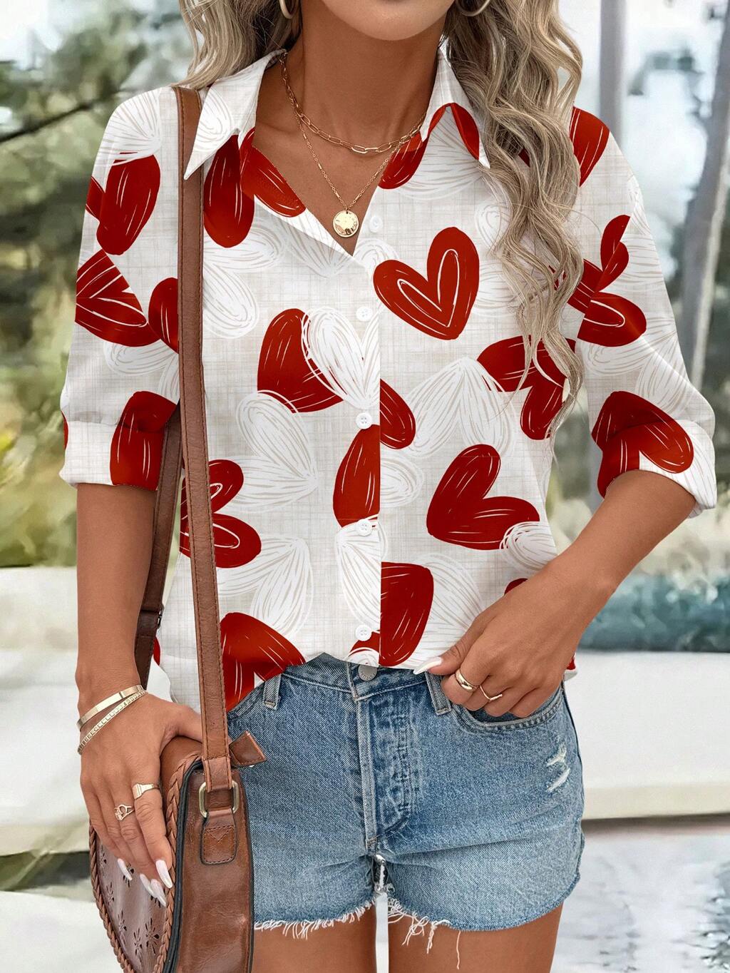Chemise à manches longues ample avec boutons et motif en forme de cœur pour femmes, décontractée. Convient pour l'été, la Saint-Valentin, la sortie. Hauts mignons, cadeaux de la Saint-Valentin pour femmes