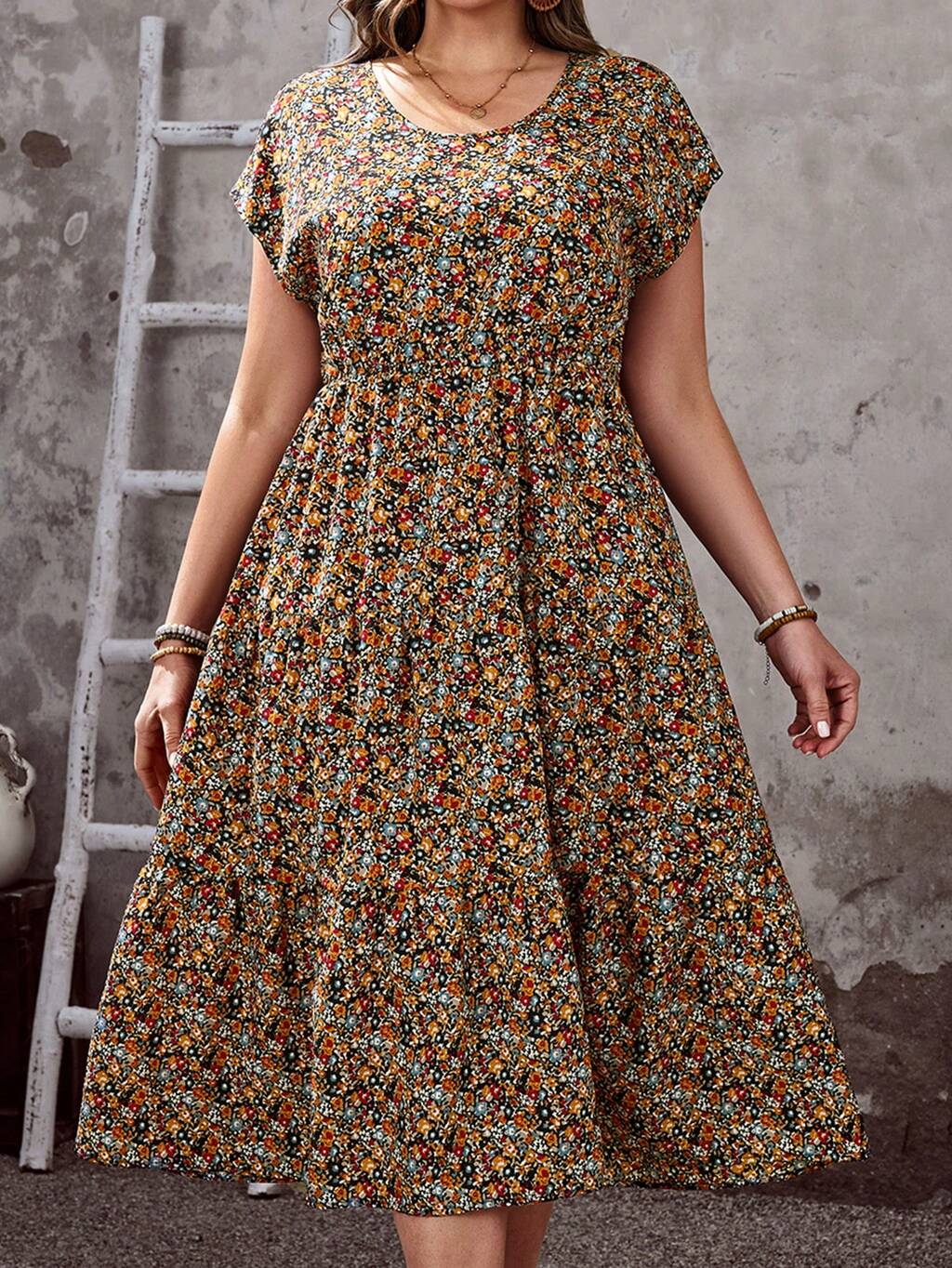 Robe décontractée à manches courtes avec imprimé floral pour femmes grandes tailles, convient pour les vacances de printemps/été