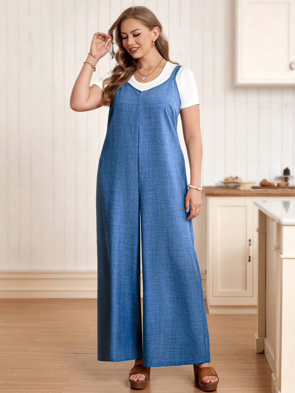 Combinaison ample et décontractée à jambes larges de couleur unie pour grandes tailles