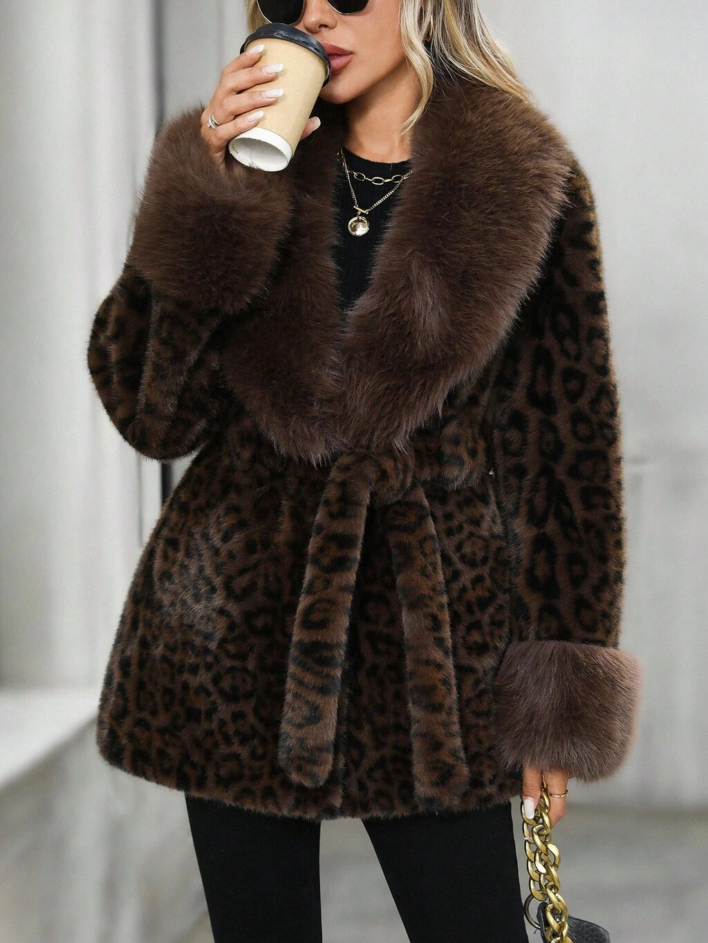 Veste de mode à col châle, manches longues, imprimé léopard et fausse fourrure pour femmes
