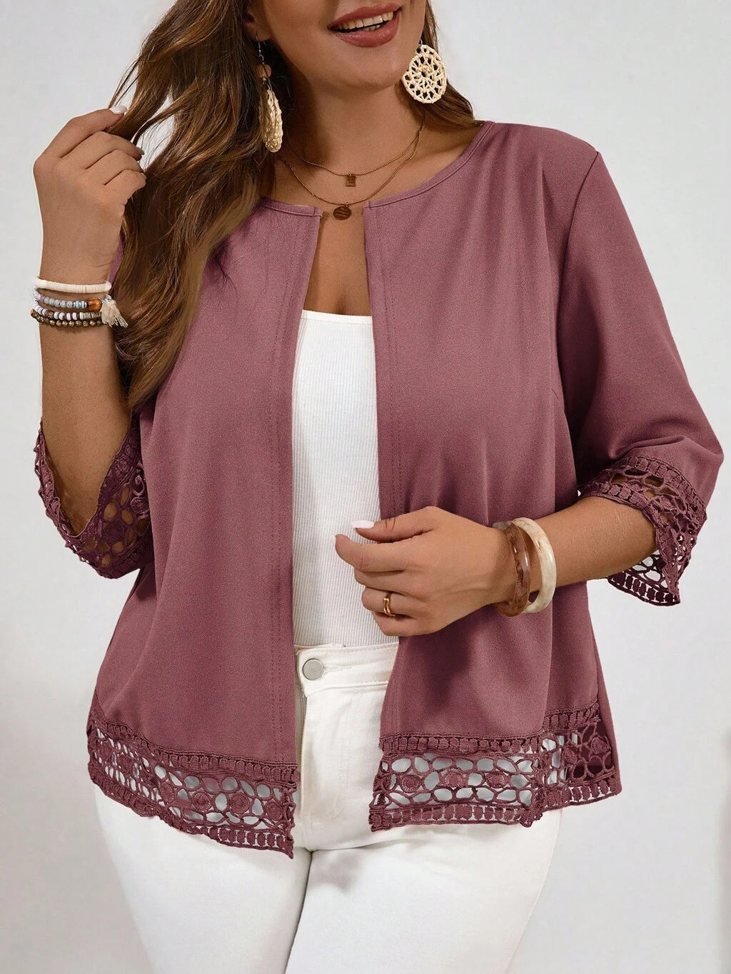 Veste décontractée ample et fine pour femmes grandes tailles avec devant ouvert et manches 3/4