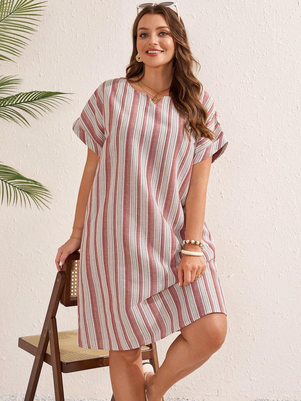 Robe décontracté à rayures pour femmes grandes tailles, à porter au quotidien ou en soirée