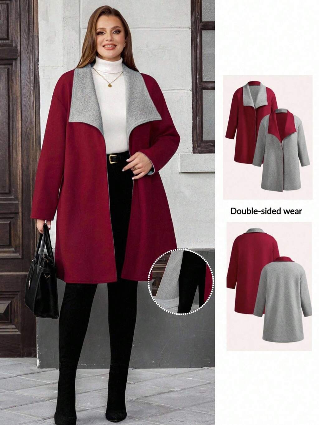 Veste décontractée ample à col contrasté et manches longues pour femmes grandes tailles, vêtements d'automne/hiver pour femmes, vêtements de nouvel an
