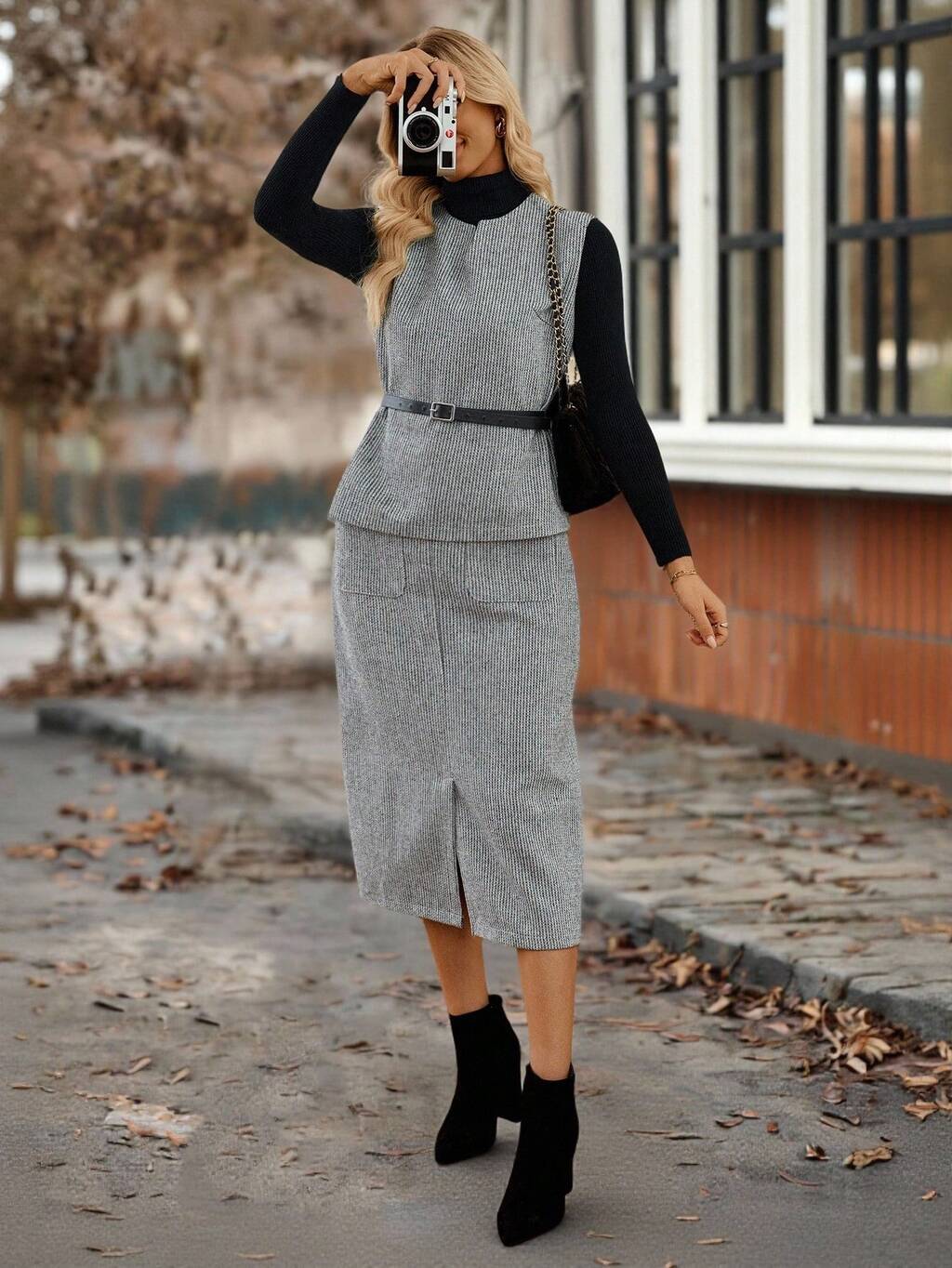 Ensemble 2 pièces élégant pour femme, composé d'un gilet et d'une jupe pour le trajet