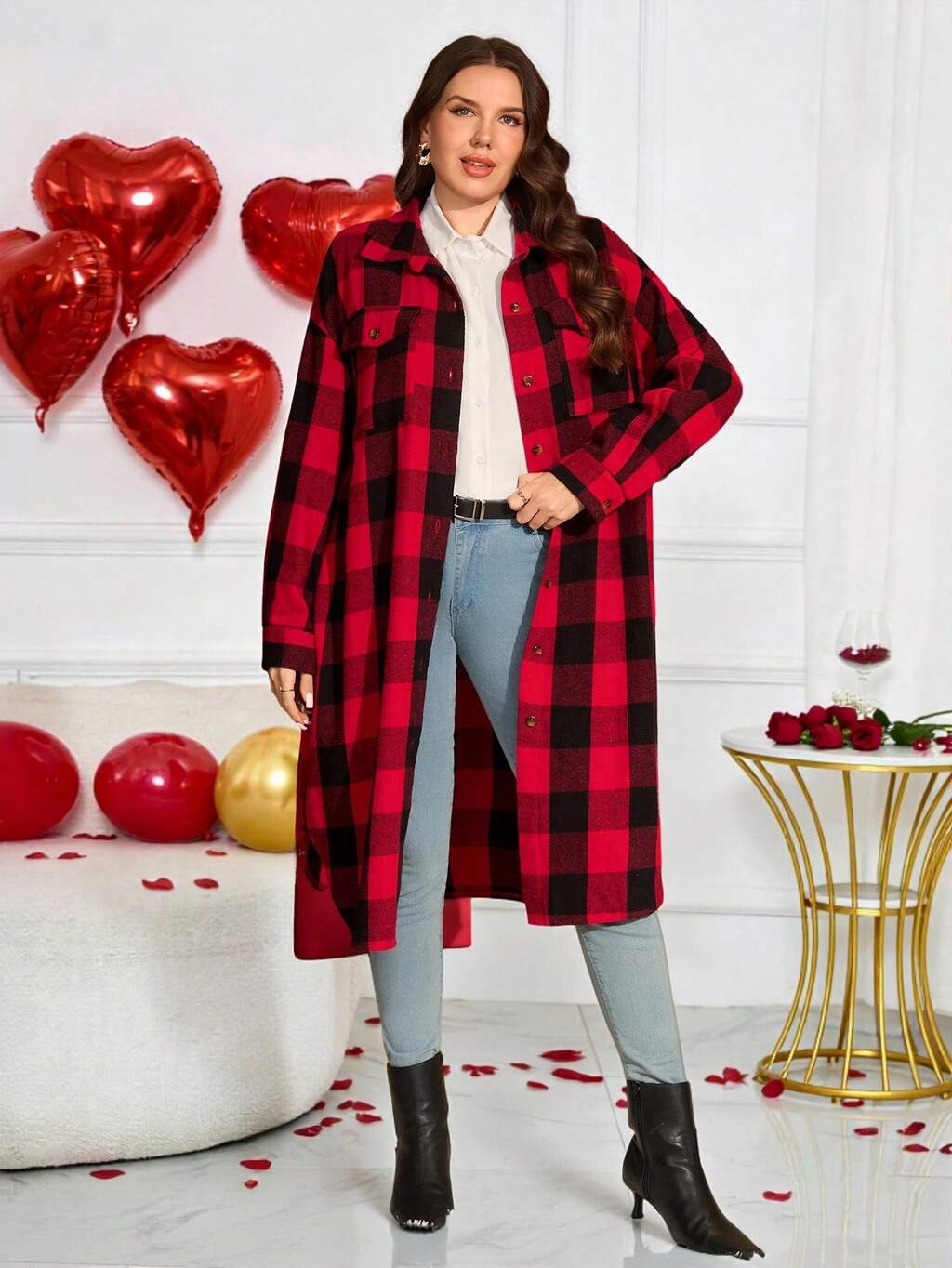 Manteau croisé à carreaux pour femmes grandes tailles, manteau d'hiver à carreaux, collection élégante et de manteaux longs pour femmes pour Noël et Nouvel An