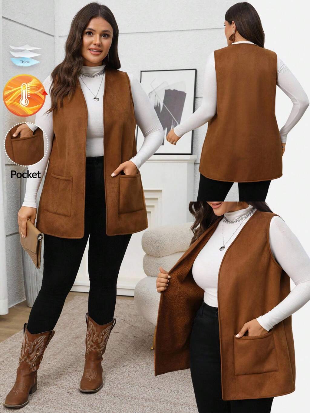 Veste longue à manches longues, style bohème décontracté, avec ouverture devant, pour femmes grandes tailles