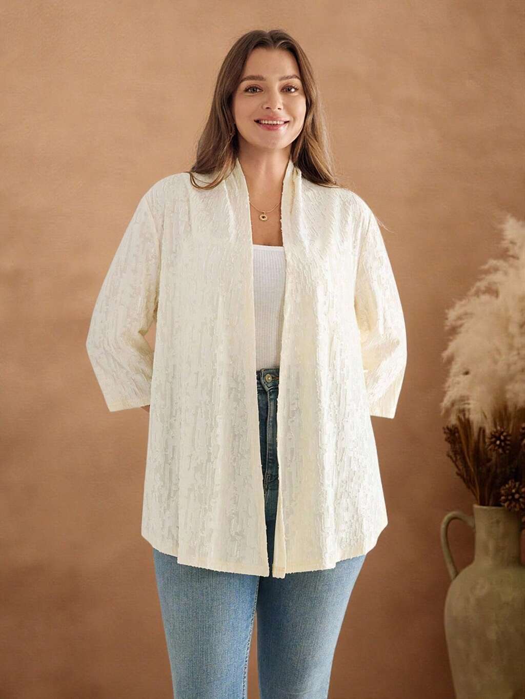 Veste texturée de couleur unie décontractée grande taille