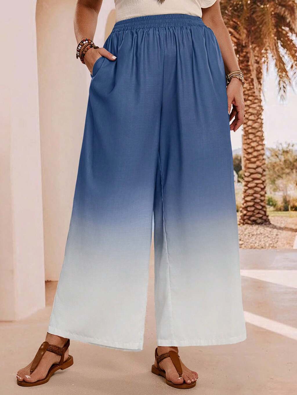 Pantalon ample à poche en biais dégradé pour femmes grandes tailles, de style simple et mode, convient pour l'été, les vacances décontractées, la mode estivale, les tenues estivales pour femmes, les tenues de la fête des mères, les tenues de concert country, les tenues boho pour femmes, les tenues western pour femmes, les tenues de vacances pour femmes, vêtements d'été pour femmes, vêtements grande taille pour femmes, vêtements d'affaires décontractés d'été pour femmes, vêtements grande taille pour femmes, tenues habillées pour femmes