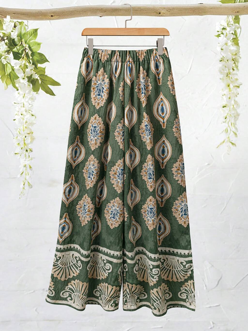 Pantalon ample palazzo à imprimé tropical pour femmes, tenue de style décontracté pour villégiature