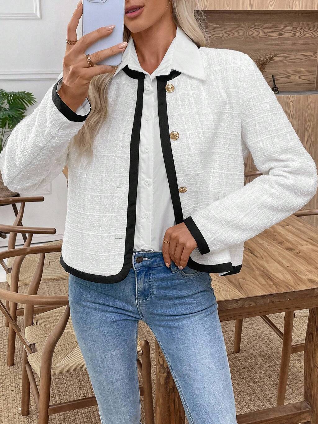 女性用カジュアルコミューターコントラストトリムレギュラージャケット、女性用冬服、冬ジャケット、冬コート、女性用冬服、女性用秋服