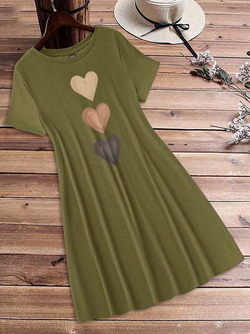Damska dopasowana mini sukienka z okrągłym dekoltem i krótkim rękawem, z nadrukiem miłosnym, lato