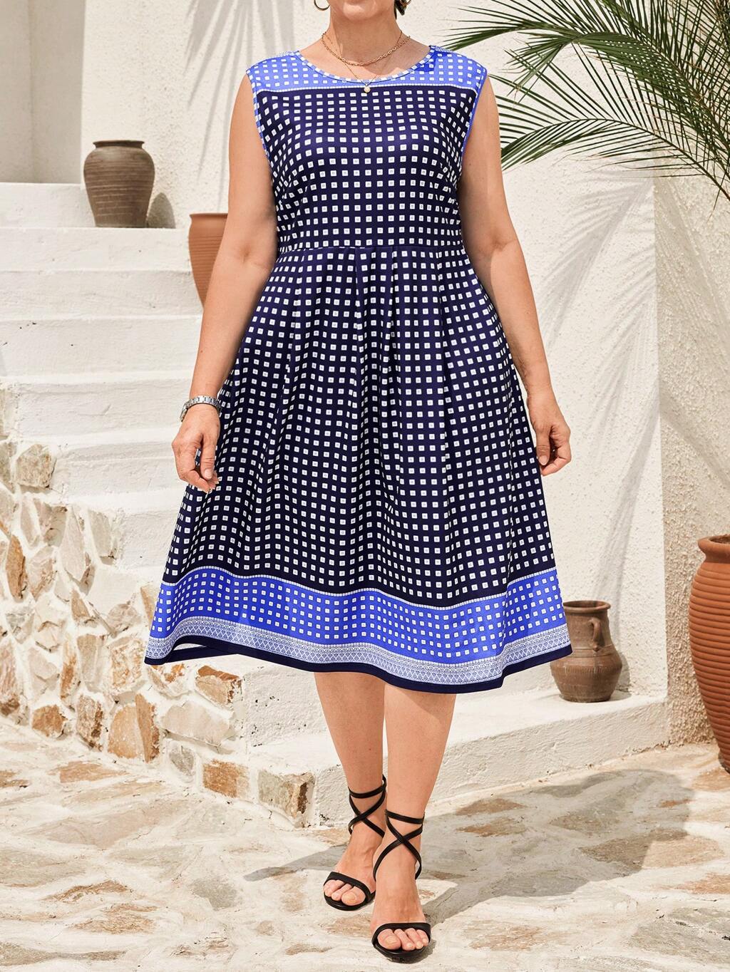 Plus Size Women Plaid Crew Neck Sleeveless Casual Dress Women Summer Dresses, Women Dresses Women Short Dresses, Women Floral Dress,Summer Outfits For Women,Concert Outfit Women Women Cocktail Dress,Elegant Women's Dress