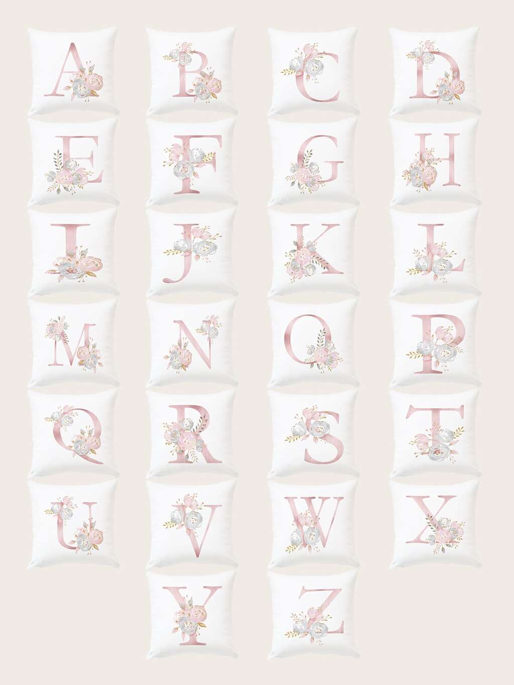1pc Alphabet & Floral Print Cushion Cover Without Filler, Fabric Square Shaped Pillowcase For All Season